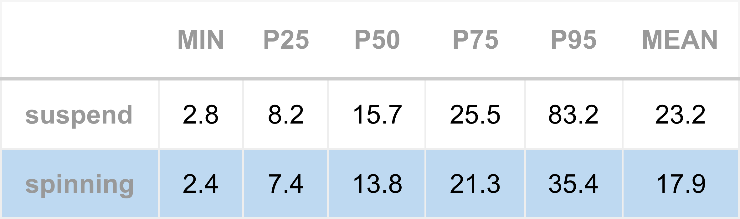 Introducing spinning is straightforward, often requiring just a few additional lines of code. It can be applied whenever a thread needs to wait for data, or more temporarily when acquiring locks. In Apex, we added spinning to the socket IO stage to reduce the time taken to react to market data.